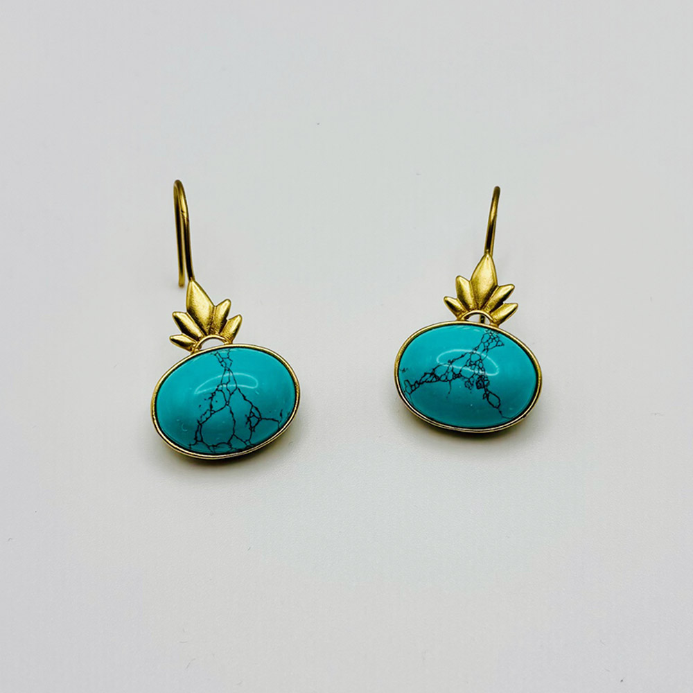 Echoes of Serenity: Golden Earrings with Turquoise Stone