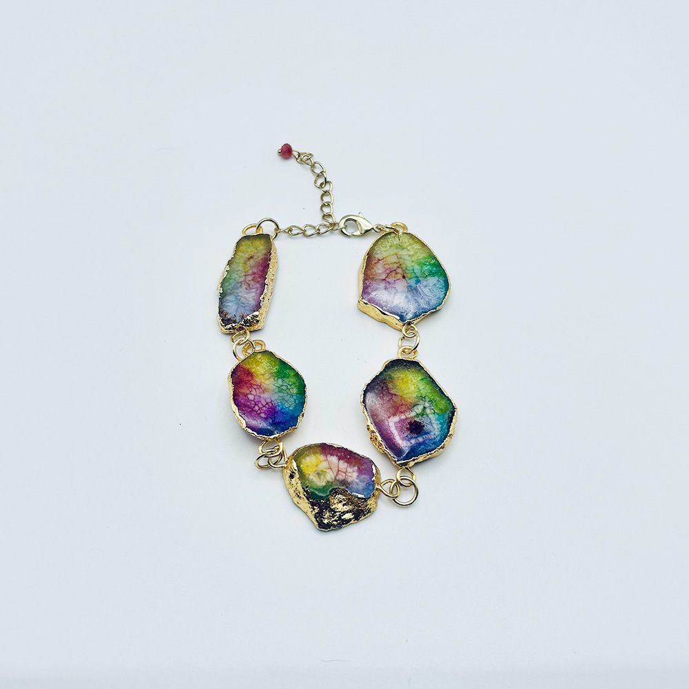 Descripti:Iridescent Soul – Golden Bracelet with Rainbow-Hued Stones