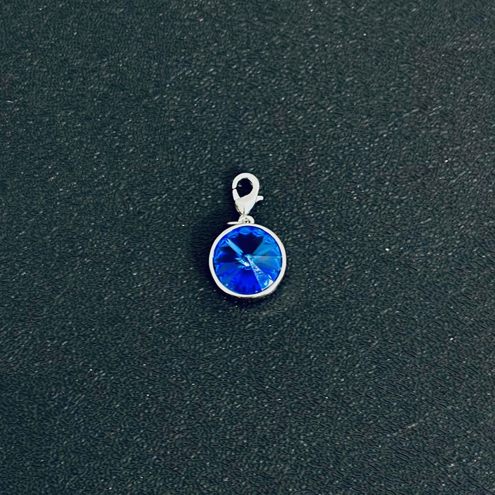 Description: “True Essence”: Silver Circle Charm with Blue Spinel